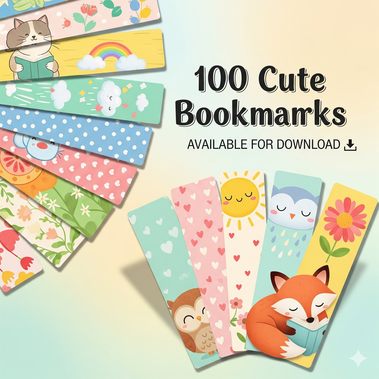 100 Cute Bookmarks – Digital ZIP Pack for Readers & Creators