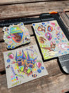 NOTE- these are NOT in 100% pristine condition! The corners/edges on some of the artworks paper is bent and crinkled due to travel!