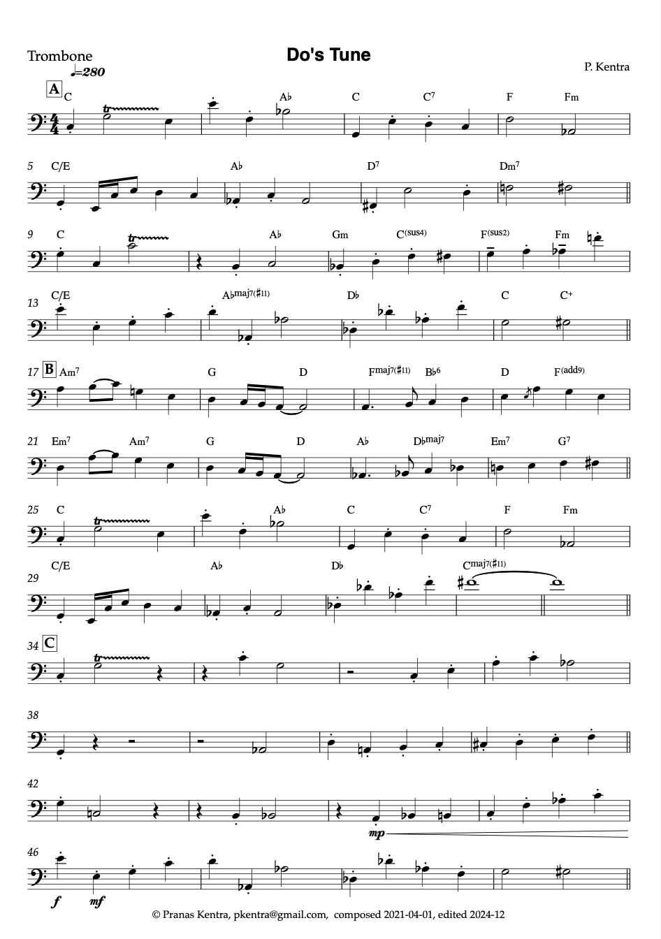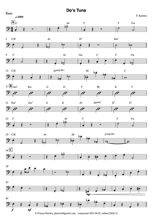 Do's Tune (Guitar Notes and Tabs, Trombone, Bass, and Full Score Charts)