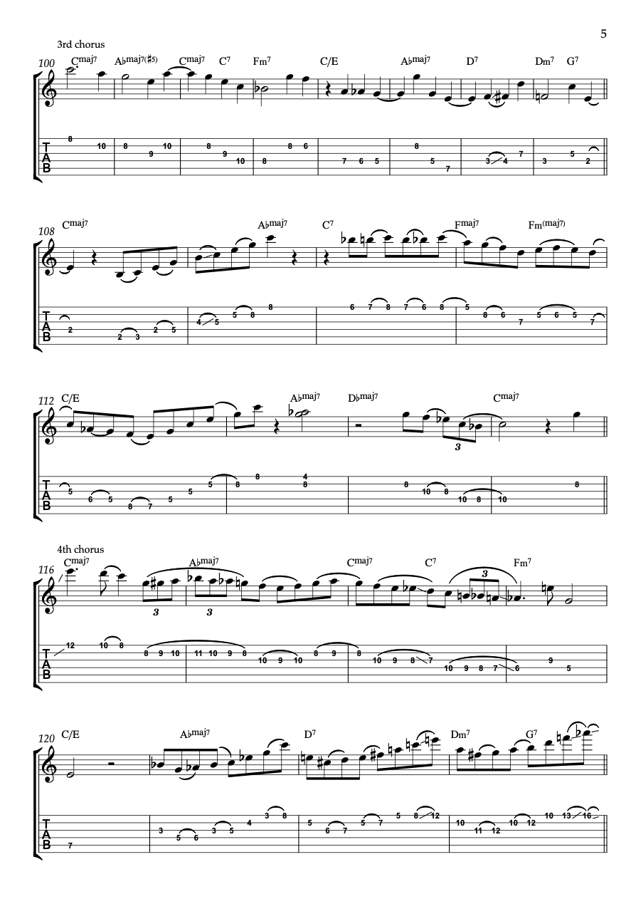 The product contains the full video performance transcription pdf. with exact tabs, notes (two voices notation) and left-hand fingerings, making it as informative as possible. It is 9 pages long.
