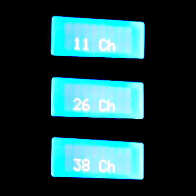 * Verifique, desde el display del equipo, que el menú "Channel Mode" muestre los modos: 11Ch, 26Ch y 38Ch.