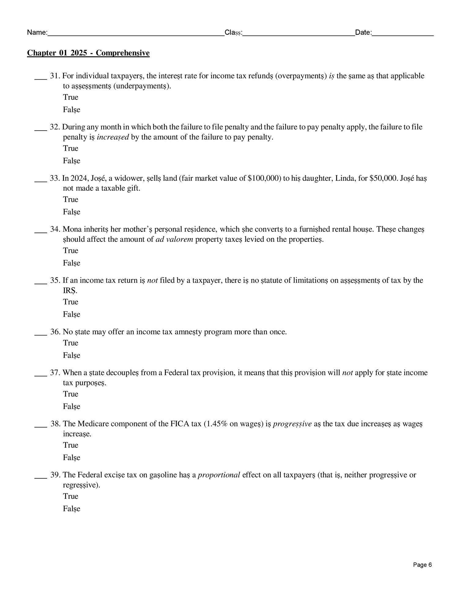 Test Bank – South-Western Federal Taxation 2025: Comprehensive, 48th Edition | (Complete 30 Chapters)