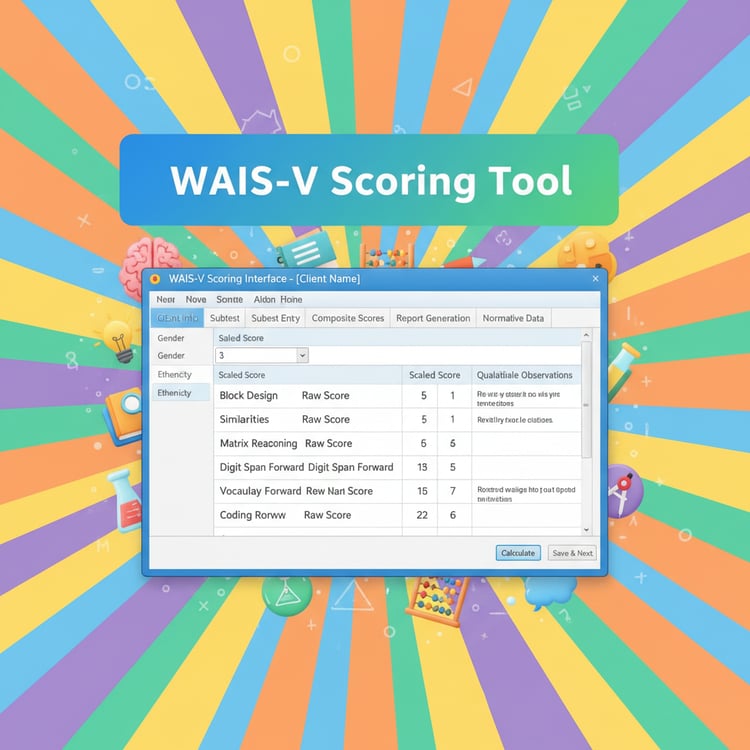 KTEA-3 scoring tool for academic achievement evaluations. Simply enter standard scores and student information and the program calculates percentile ranks and classifications and generates a ready-to-use achievement report. Windows desktop automation for evaluators.