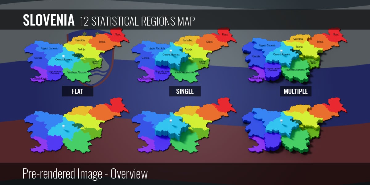 Slovenia - 12 Statistical Regions Map (3D + Pre-rendered Images)