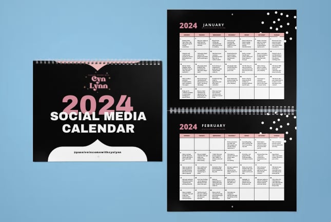 ✅ 2024 Social Media Calendar PDF: 365 content prompts (some of those being National holidays), 150 video/caption hooks, and 93 ready-to-use CTAs for your content planning.