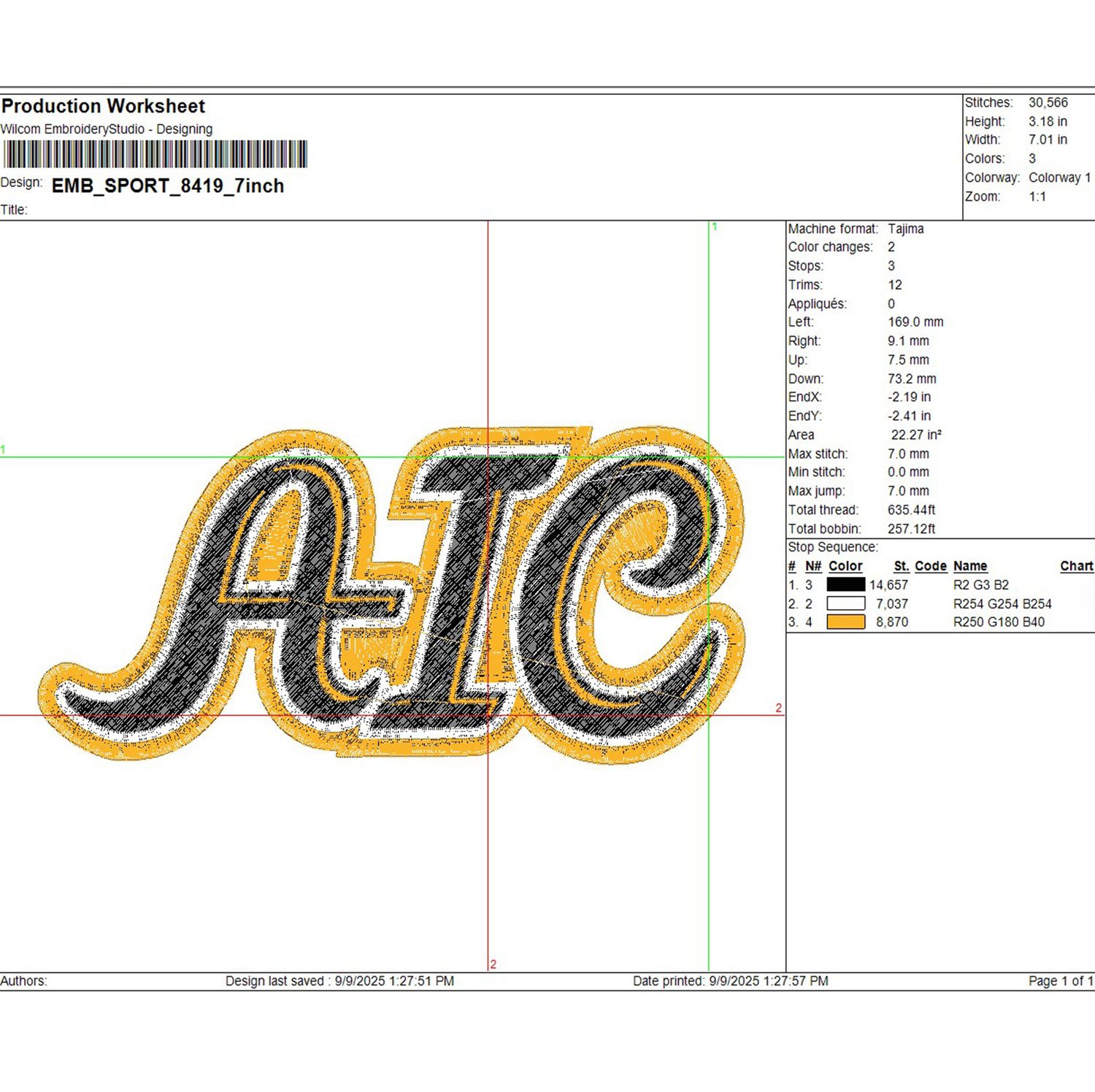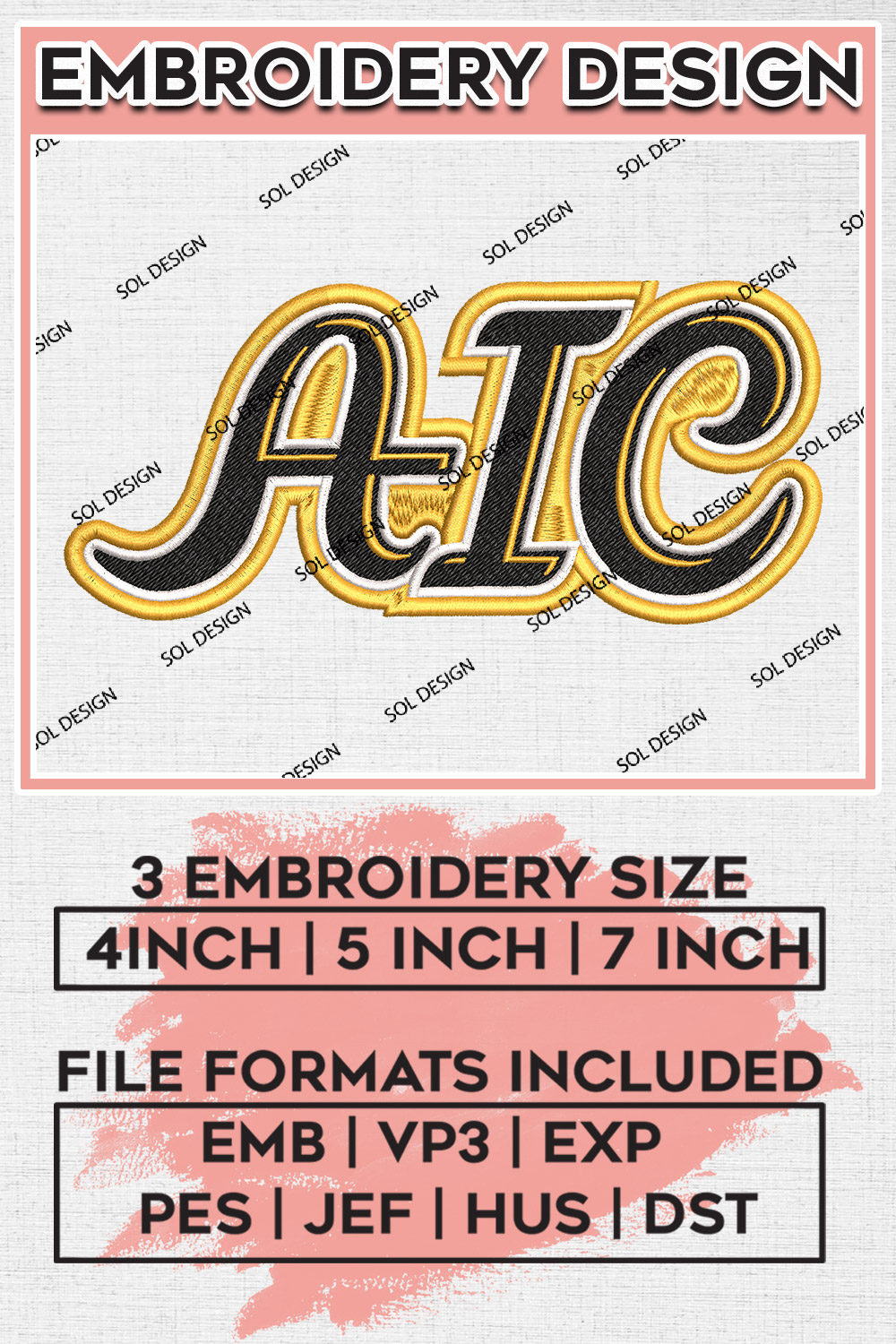 NCAA AIC Yellow Jackets Team Word Logo Embroidery Designs, Ncaa Embroidery Files, NCAA AIC Yellow Jackets Team Logo Embroidery, Game Day Machine Embroidery Design, Digital Download