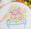 These four patterns all have a small bird perched on the handle of a vase or jug etc that is filled with flowers.