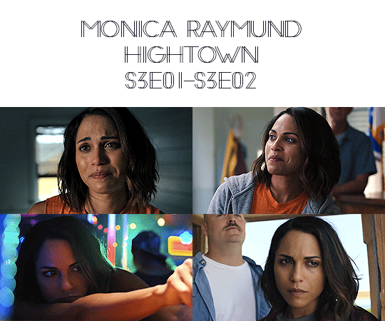 In this here gif pack you’ll find 196 gifs of Monica Raymund in the first two episodes of season 3 of ’Hightown'. All these gifs were made by me, so please don’t claim as your own. Do NOT put into other gif hunts. If credit is given, you may use/edit them as sidebars, crackships, etc, just please ( @ ) me so I can see your wonderful creations!
