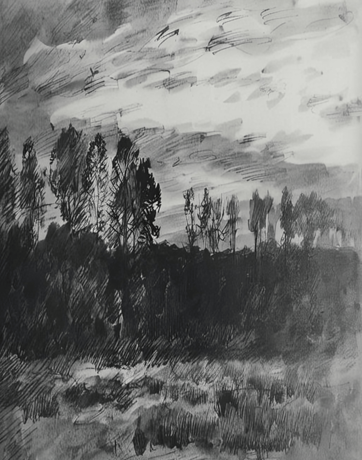 Black & White Nature Wall Art, Vintage Landscape, Nostalgic Nature, Cool Nature, Rustic natural Landscape, Painting.