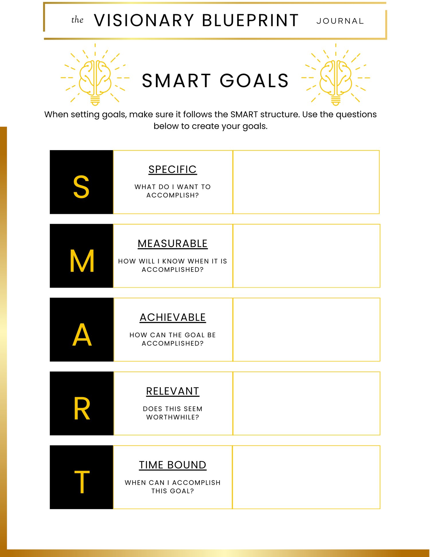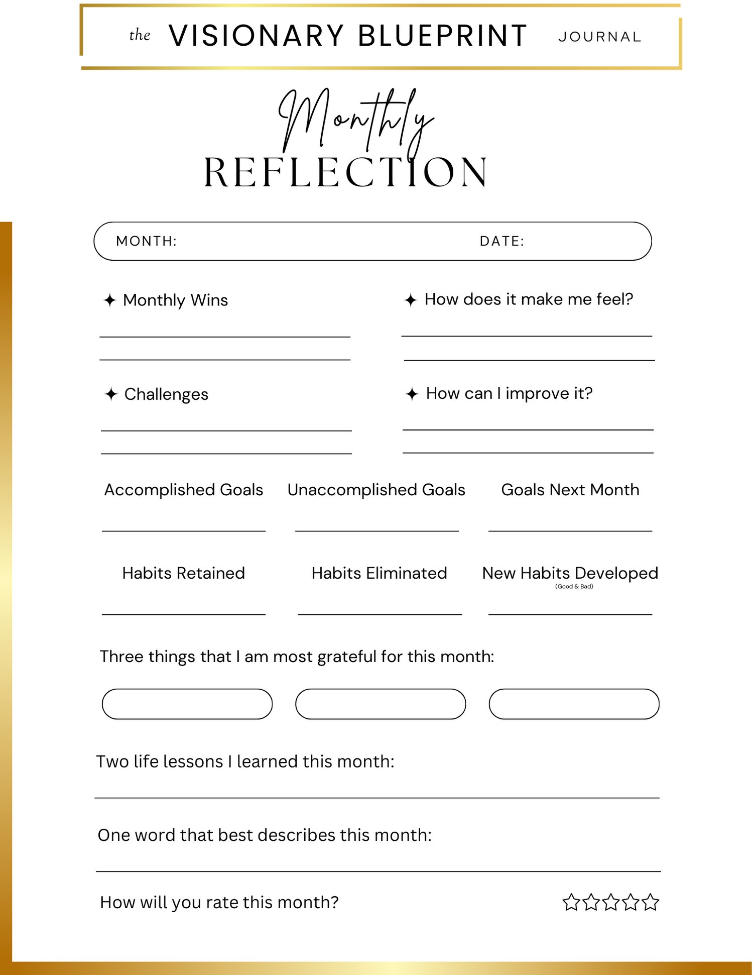 Are you ready to finally see your goals come to life? The Visionary Blueprint Journal is a 12-month digital journal designed to help you: