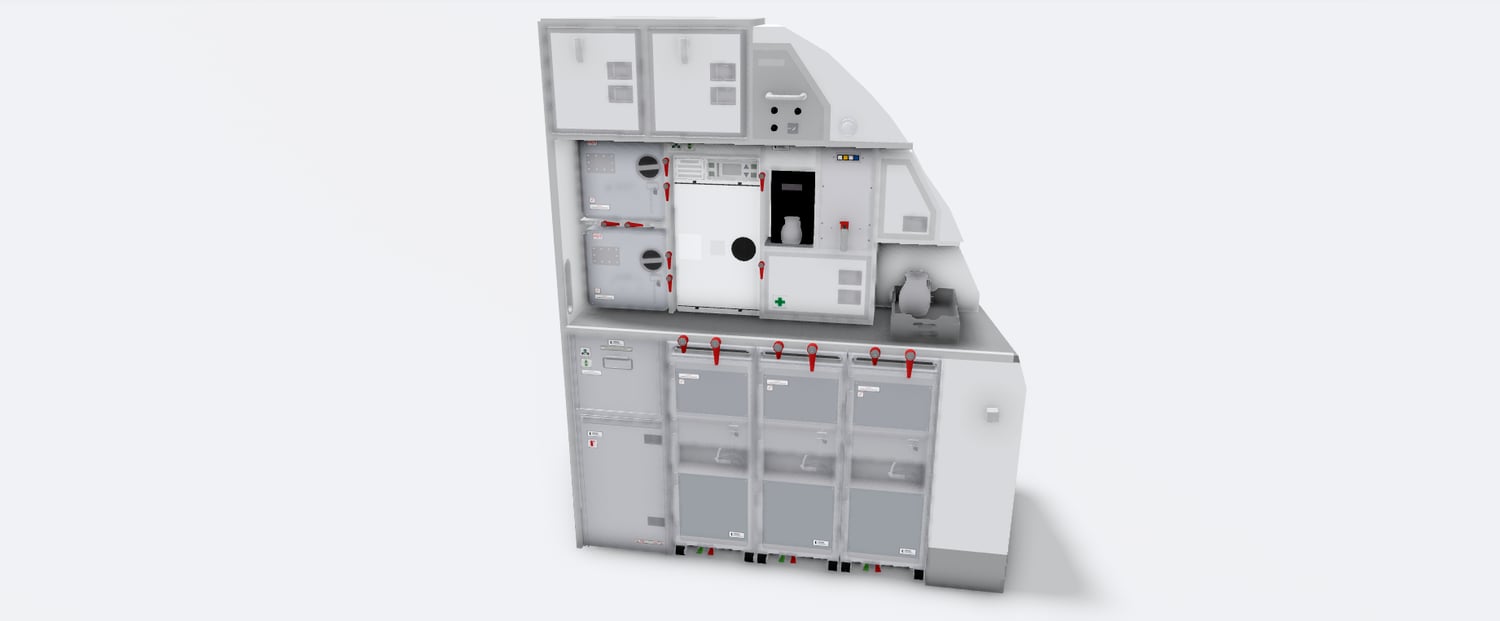 This detailed, realistic aircraft galley model replicates the layout and functionality of in-flight kitchen spaces. Fully customizable, it includes storage units, equipment, and compartments, perfect for any airline or aircraft.