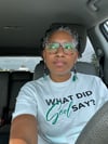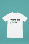 Before talk to anyone about anything, or before you consider what 'they' are saying. This is your reminder to consult with and ask yourself, What Did God Say?" This minimalist tee was created as a reminder and for conversation. It's perfect as a solo fit and for layering.