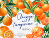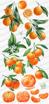 Juicy tangerines. Separate elements with fruits, leaves, branches and flowers
