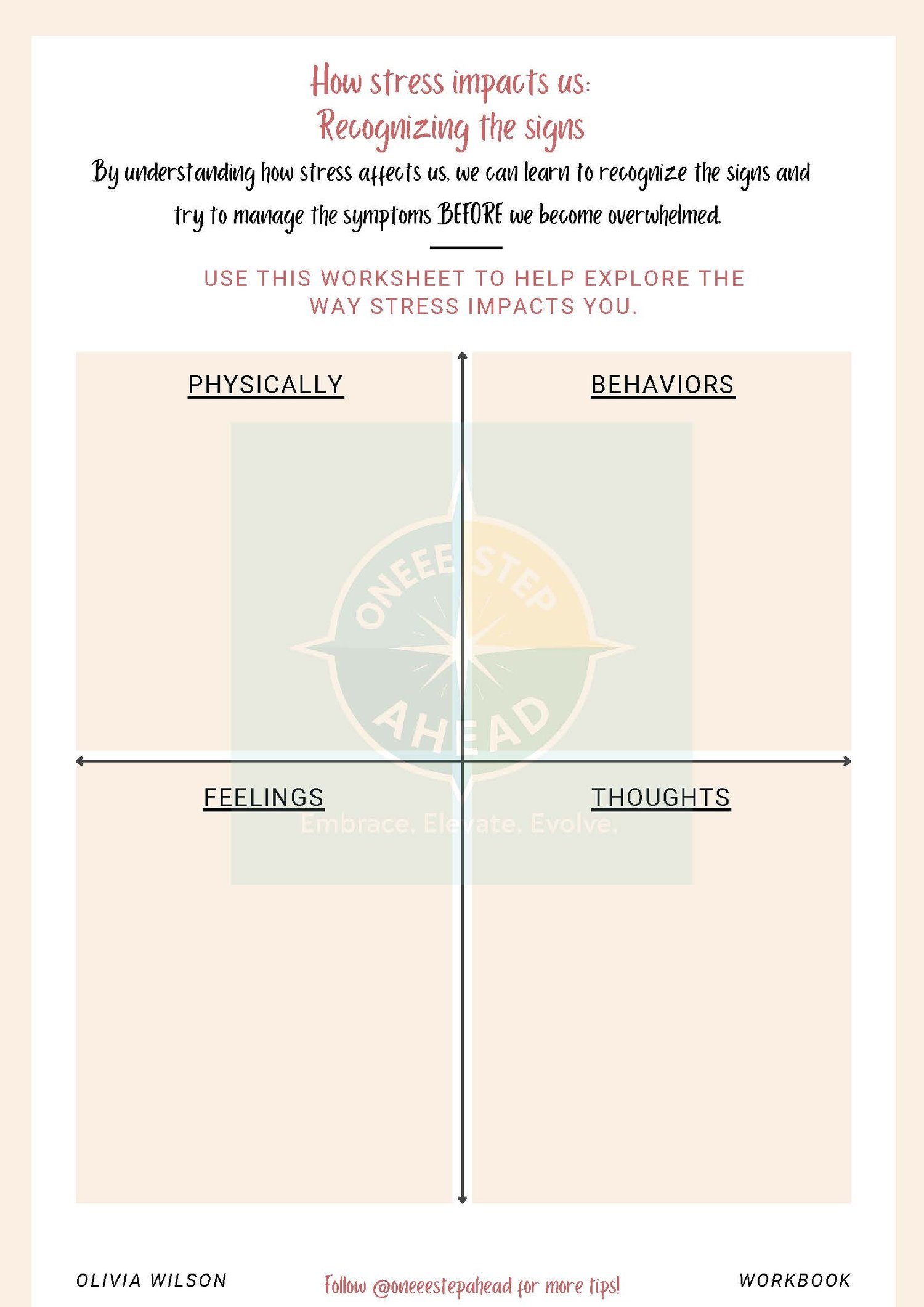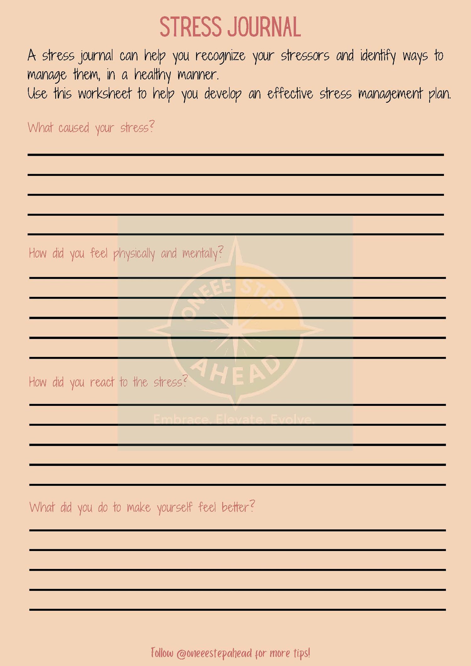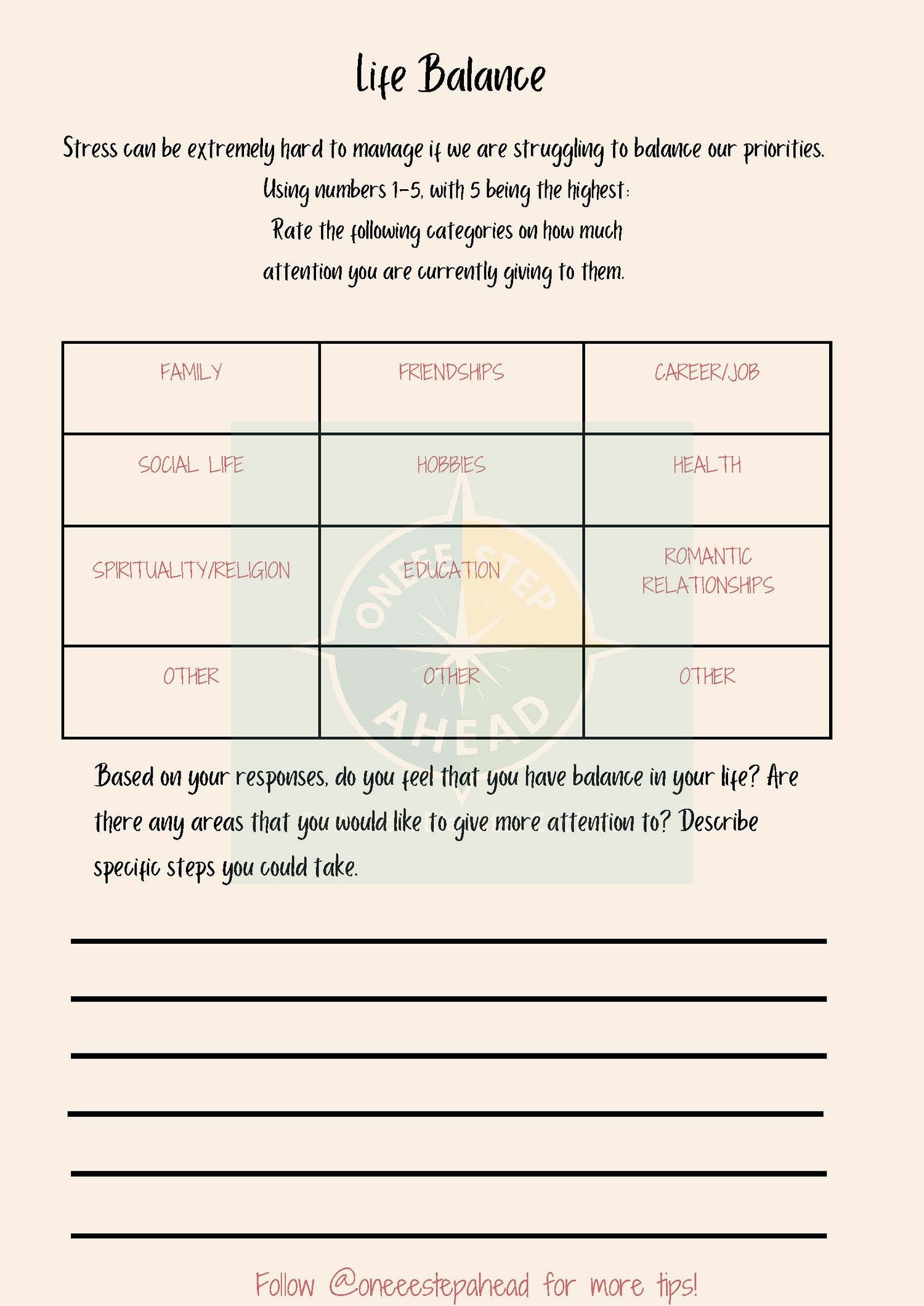 Included in this bundle are the stress journal, recognizing signs, life balance, 4 A's of stress management, and stress management plan.