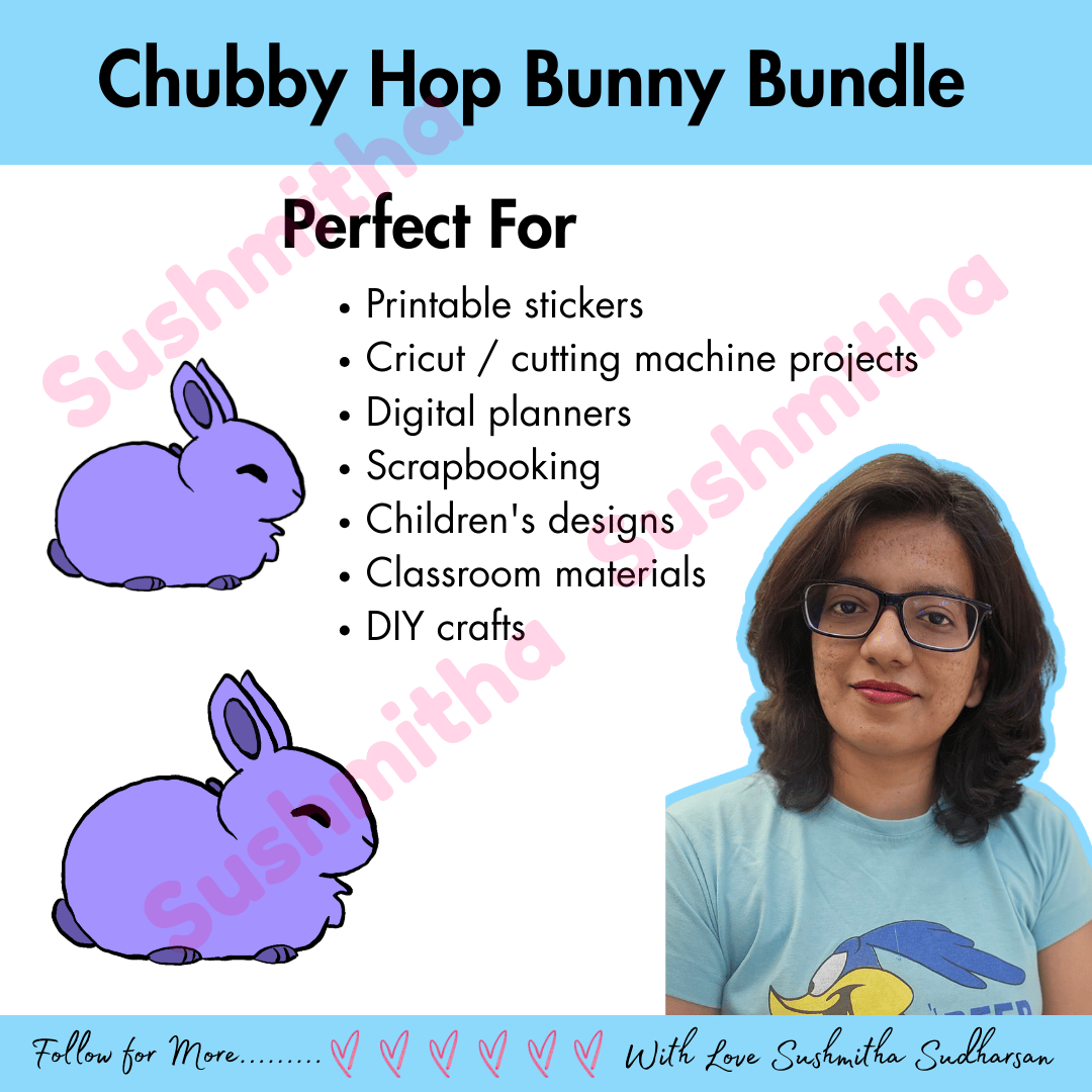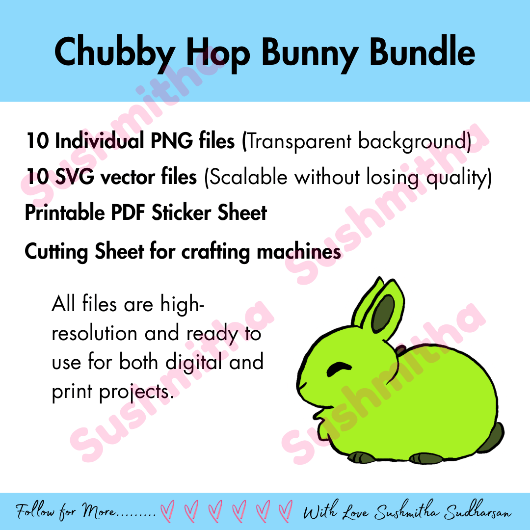 Meet the adorable Chubby Hop Bunny Collection, a playful and charming character bundle designed to bring joy to your creative projects. This cute bunny set features soft, chubby characters available in vibrant colors, perfect for designers, crafters, teachers, and small business creators.