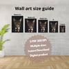 Please see the Wall art size guide in the photo gallery of this product for more information.