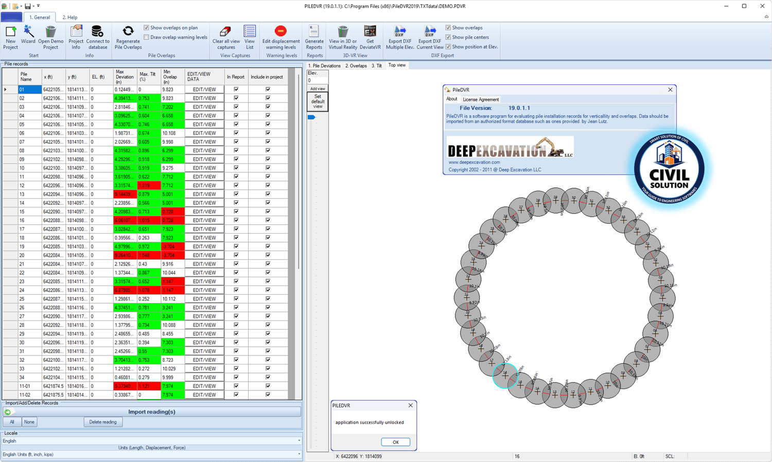 🛠️ Deep Excavation PileDVR 2019 v19.0.1.1 is specialized software for verticality inspection of drilled piles using advanced 3D visualization and virtual reality technology. It enables detailed analysis and reporting of pile installation records in three dimensions, ensuring precise control over pile alignment during construction. PileDVR supports integration with site data for comprehensive geotechnical inspections and real-time quality assurance during pile installation.