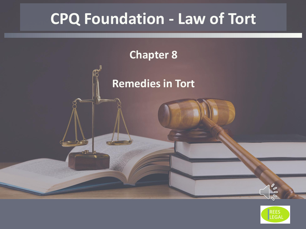 Law of Tort CPQ Chapter 8 - Remedies in Tort