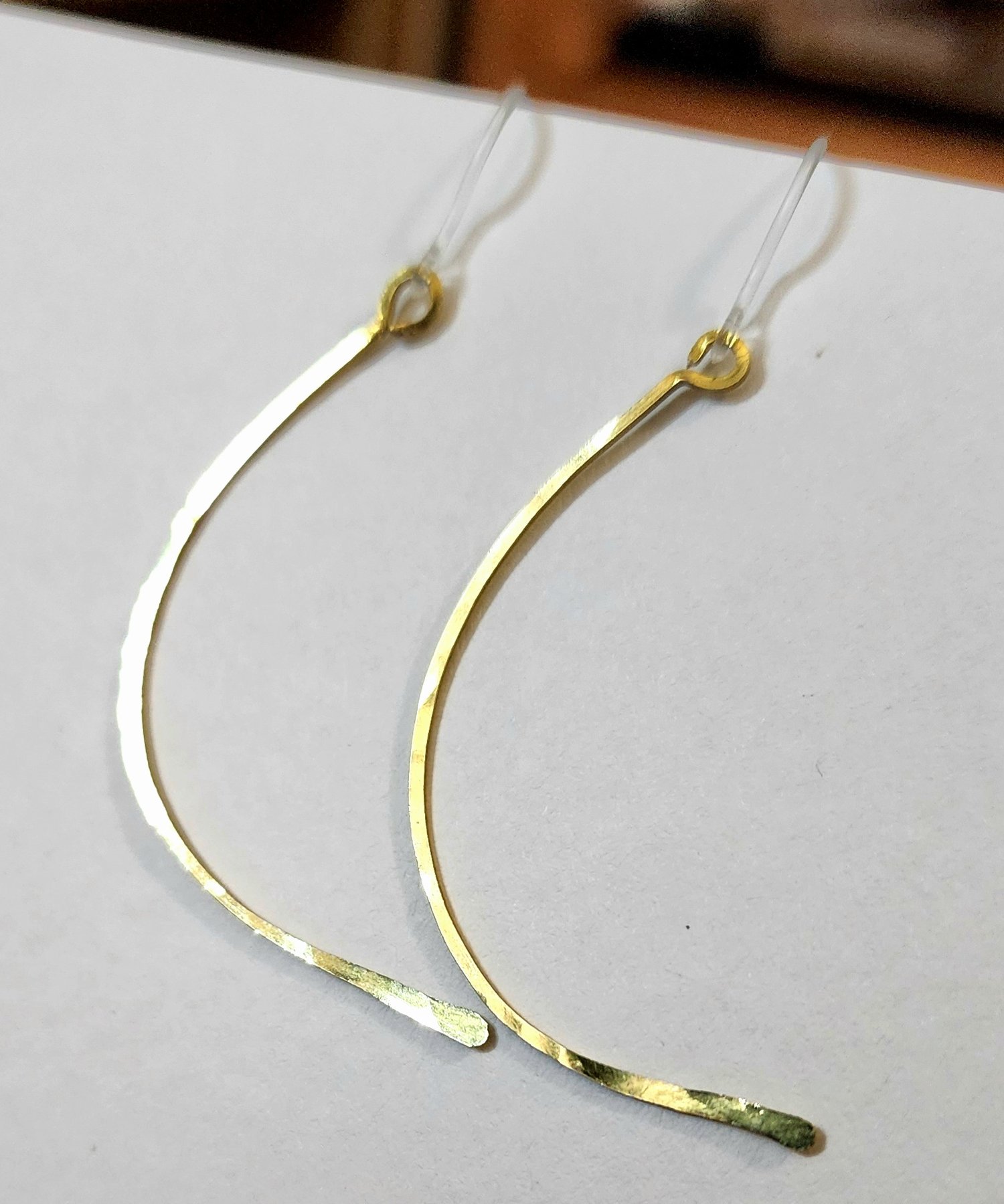 - Materials: Solid brass, clear hypoallergenic ear hooks