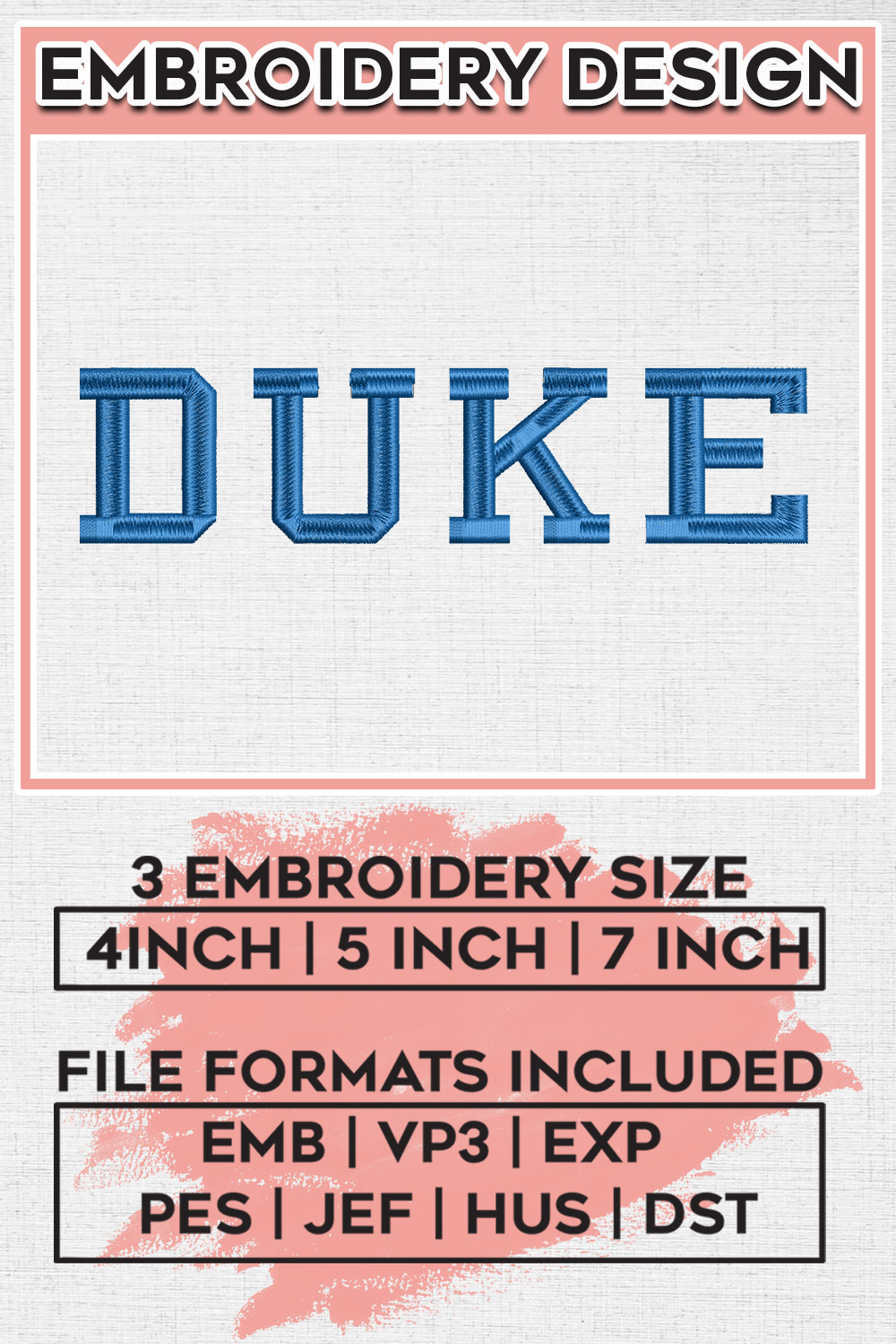 NCAA Duke Football Team Writing Logo Embroidery Designs, NCAA Duke Blue Devils Machine Embroidery Files, NCAA Logo embroidery designs, Ncaa Duke Blue Logo, Digital Download