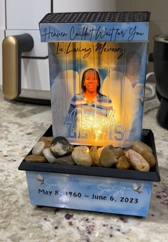 Our Custom Memorial Fountain can be a unique keepsake to keep your love one that has passed on memory alive. Our memorial fountains starting at $35. This does not including shipping which will be an additional cost. Please email pictures, quotes, name of loved one and poems to xclusivekreations@myyahoo.com.