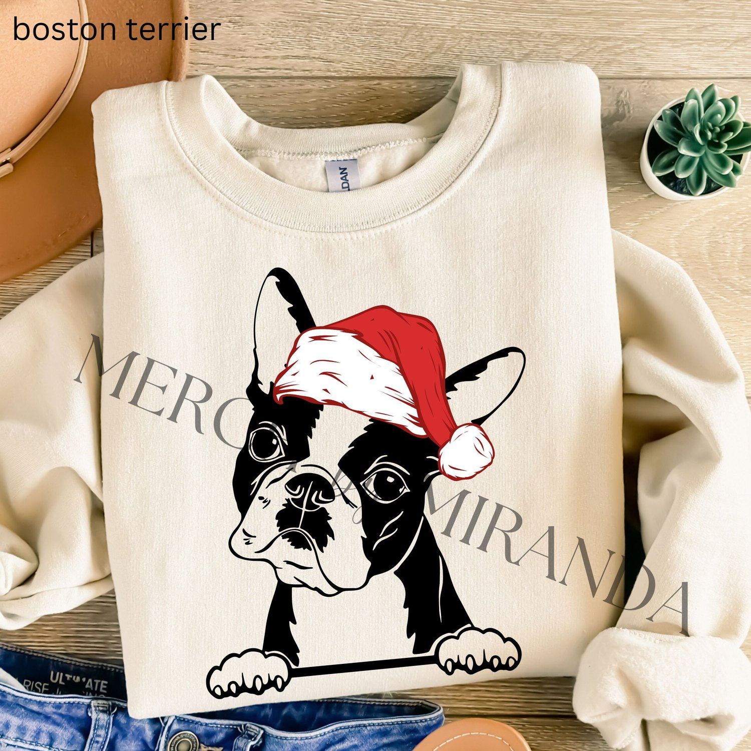 Christmas Dog - Merry Christmas - Christmas - Boston Terrier - Digital Download