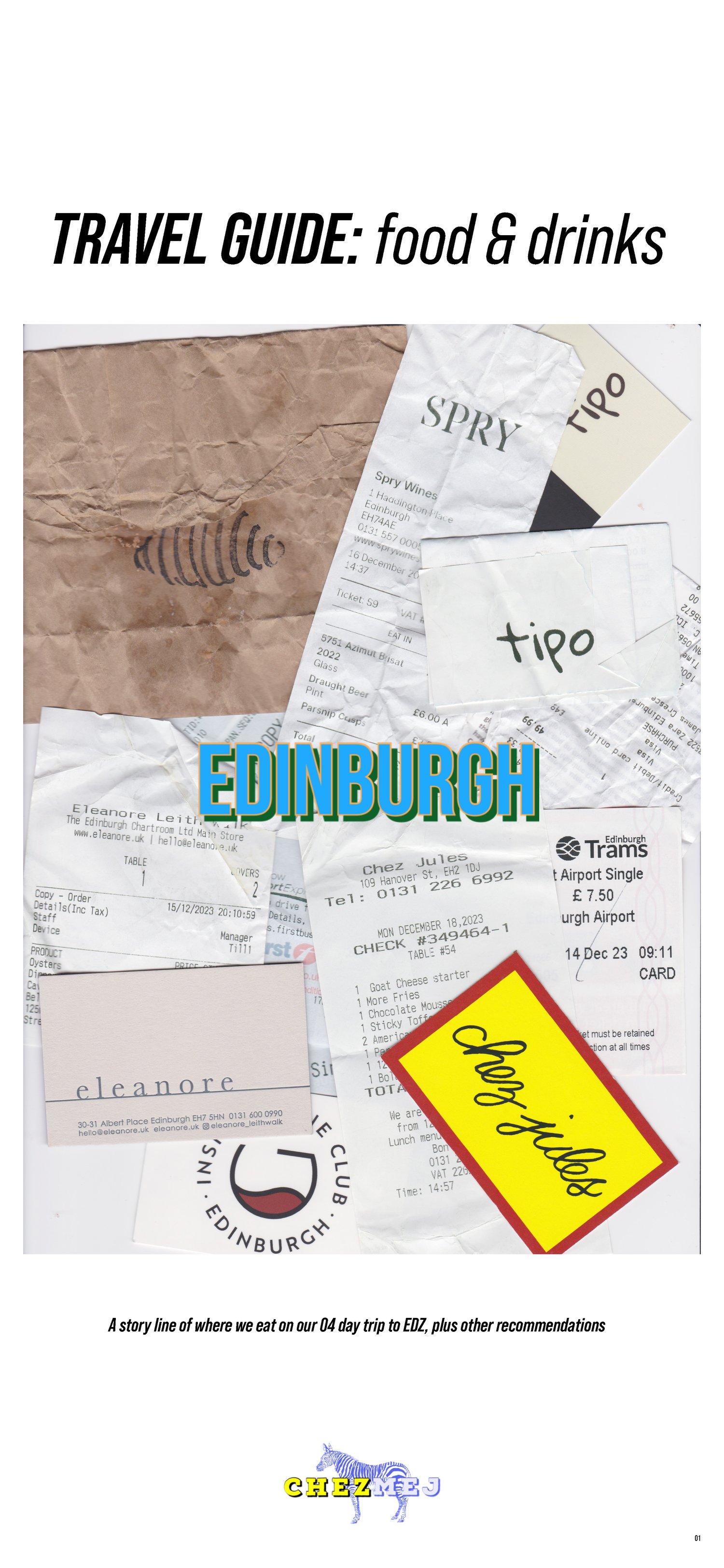 A food and drink guide to Edinburgh - recommending coffee shops & bakeries, restaurants, wine bars & pubs. Also included is an interactive Google Map with all the locations pinned for easy access.