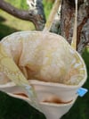 Crafted from a cream-coloured repurposed wool blanket and lined with a vintage patterned cotton sheet, it blends timeless charm with eco-conscious design. The sturdy handles and durable lining make it practical as well as pretty.