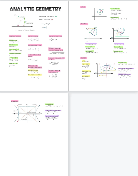 Mathematics - Analytic Geometry Formulae Sheet made Flashy 😉