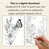 - Print on watercolor paper and paint directly on the template