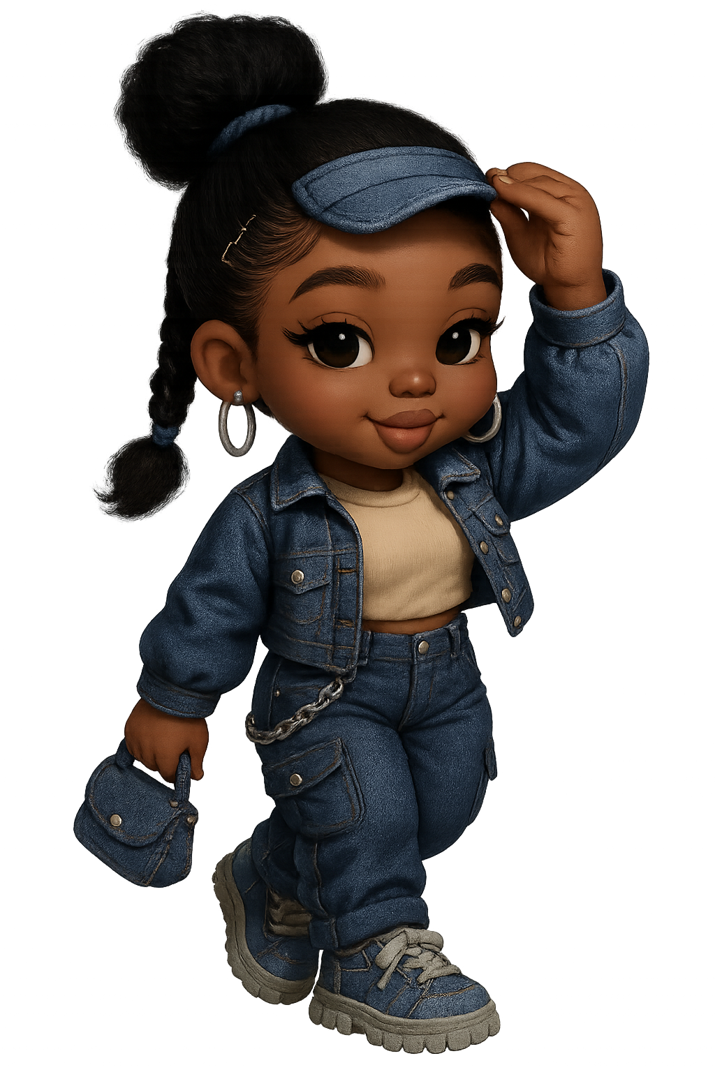 Serve bold energy with a soft edge — this chibi cutie blends cool neutrals, streetwear layers, and high-puff confidence in one unforgettable look. Whether you're building a planner spread, branding with personality, or adding flair to your digital collection, she brings attitude and aesthetic to every drop.