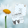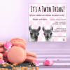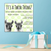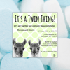 Yep, it's a TWIN thing! This is a flat square (5"x5" / 12.7x12.7 cm) card that features polka dots with twin llamas. The card comes in pink, blue, and green and an envelope template is included. The back of the card has coordinating polka dots as does the envelope (see photos). This invitation will be great for many color schemes and shower themes and it's definitely gender neutral. There are also matching Thank You cards sold separately in my shop. You can send this card in the mail or digitally---both files will be included in your purchase!