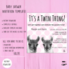 Baby Shower Invitation TEMPLATE for TWINS! Polka dots with Llamas in blue, green, pink. Just personalize, download, print/envelopes too!