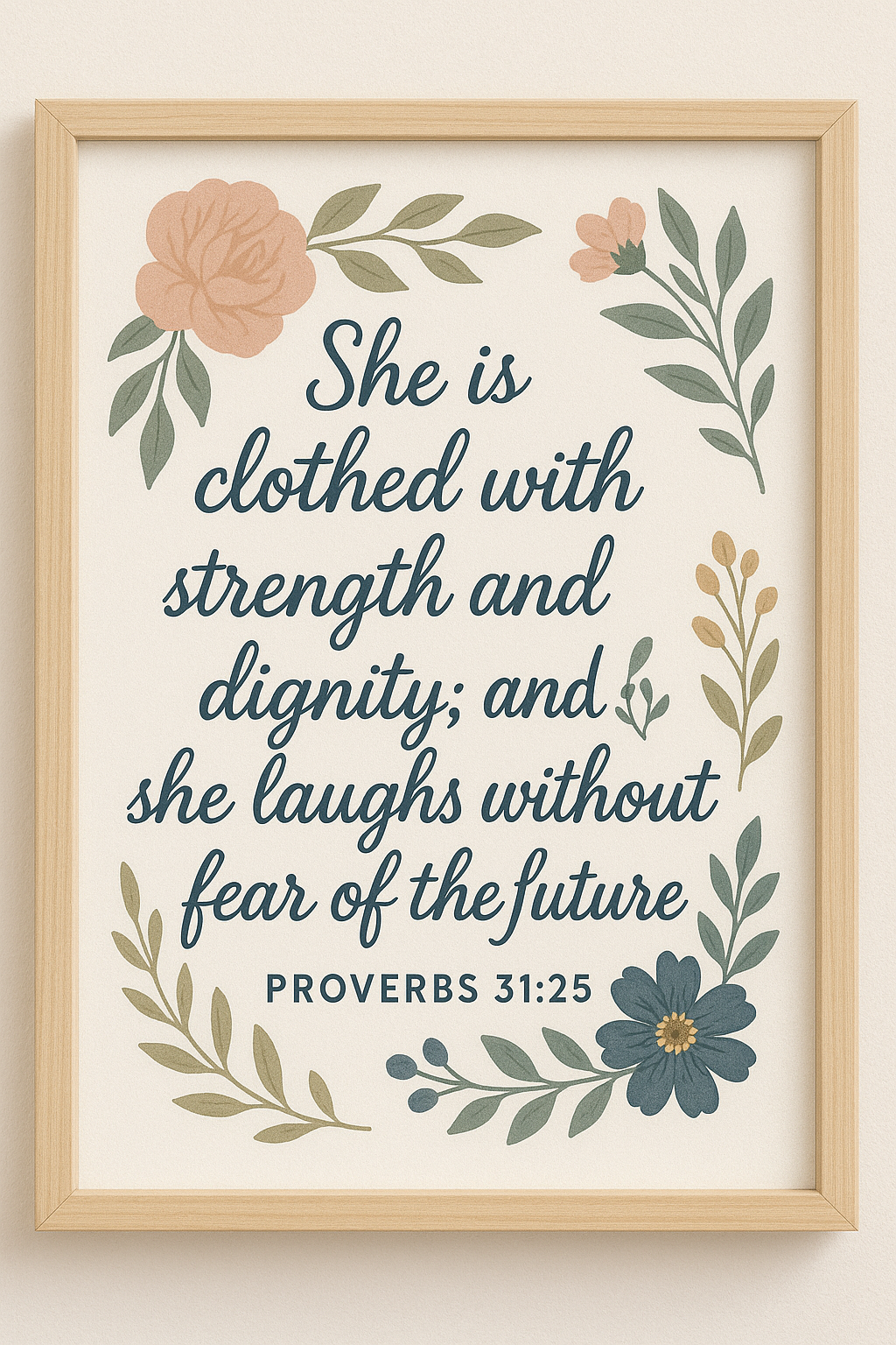 - Proverbs 31:25 – “She is clothed with strength and dignity; and she laughs without fear of the future.”
