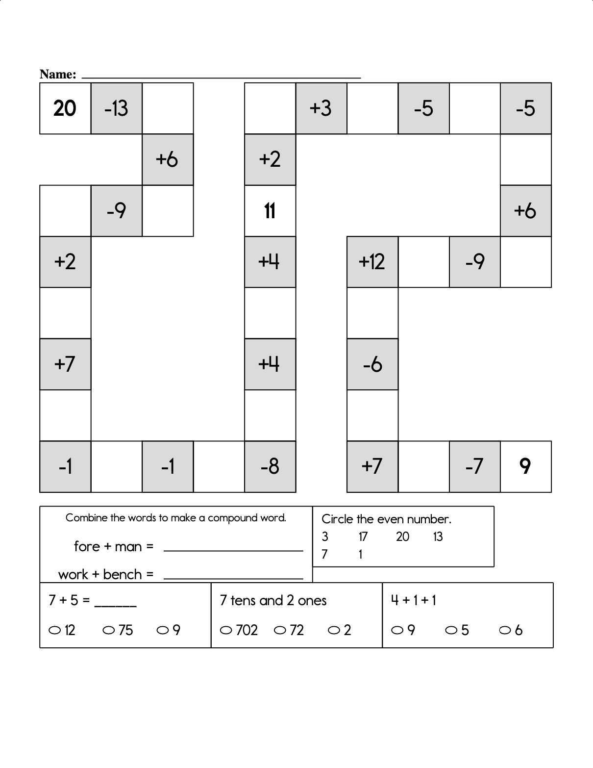 - 2.OA.B.2 – Fluently add and subtract within 20.
