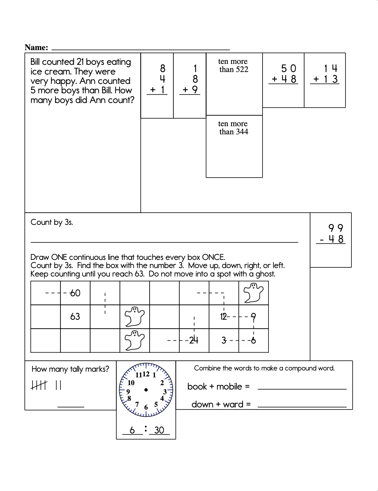 - Number Sense & Place Value – Understanding two- and three-digit numbers.