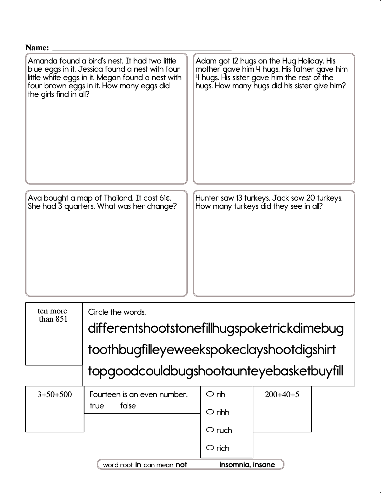 - SOL 2.4 – Problem-solving with addition and subtraction.