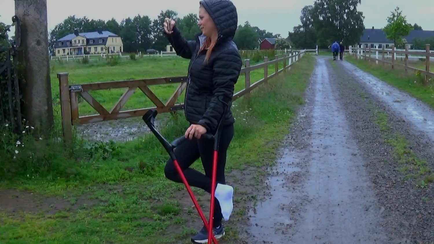 Ice is visiting the countryside today despite her right foot being sprained, it’s a cold, wet and rainy day as well. She had no luck at all. Ice covers her injured foot with a plain white sock and met up with us to get out of the city and explore some nature. A few breaks were taken during the time and great views of her sprained foot was visible every now and then too. While she’s resting, crutching or standing still. Front views, side views and back views. You’ve got it. Follow by as Ice tackles all of these muddy roads, not being scared of get a little dirty.