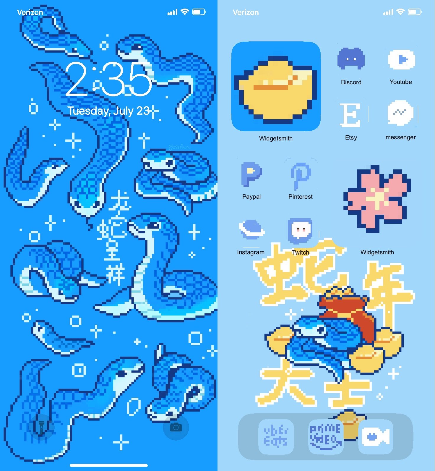 What’s included in this “Year of The Blue Snake Chinese Zodiac Lunar New Year Pixel Icon Pack | Home screen customization set for iPhone ios Android” set?