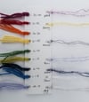 I used a palette of 9 colours from the Doulton Border Leicester 4ply range to denote the temperature range from -5°C to 40°C in 5 degree increments; I added a thread of Rowan Kidsilk Haze in 7 colours to represent weather conditions such as sun, wind, overcast, rain, snow, fog, and storm. You can work with just the temperature if you prefer, on slightly smaller needles; your blanket will be slightly smaller but just as lovely!