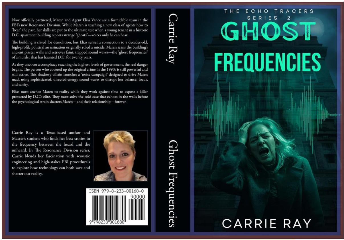 Now officially partnered, Maren and Agent Elias Vance are a formidable team in the FBI's new Resonance Division. While Maren is teaching a new class of agents how to "hear" the past, her skills are put to the ultimate test when a young tenant in a historic D.C. apartment building reports strange "ghosts"—voices only he can hear. The building is slated for demolition, but Elias senses a connection to a decades-old, high-profile political assassination originally ruled a suicide. Maren scans the building's ancient plaster walls and retrieves faint, trapped sound waves—the "ghost frequencies" of a murder that has haunted D.C. for twenty years. As they uncover a conspiracy reaching the highest levels of government, the real danger begins. The person who covered up the original crime in the 1990s is still powerful and still active. This shadowy villain launches a "noise campaign" designed to drive Maren mad, using sophisticated, directed-energy sound waves to disrupt her balance, focus, and sanity. Elias must anchor Maren to reality while they work against time to expose a killer protected by D.C.'s elite. They must solve the cold case that echoes in the walls before the psychological strain shatters Maren—and their relationship—forever.