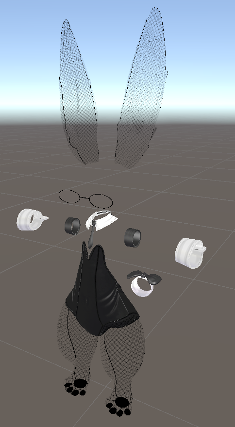 The costume has 5 parts, so you can create an animation to set the 5 of them toggable ~