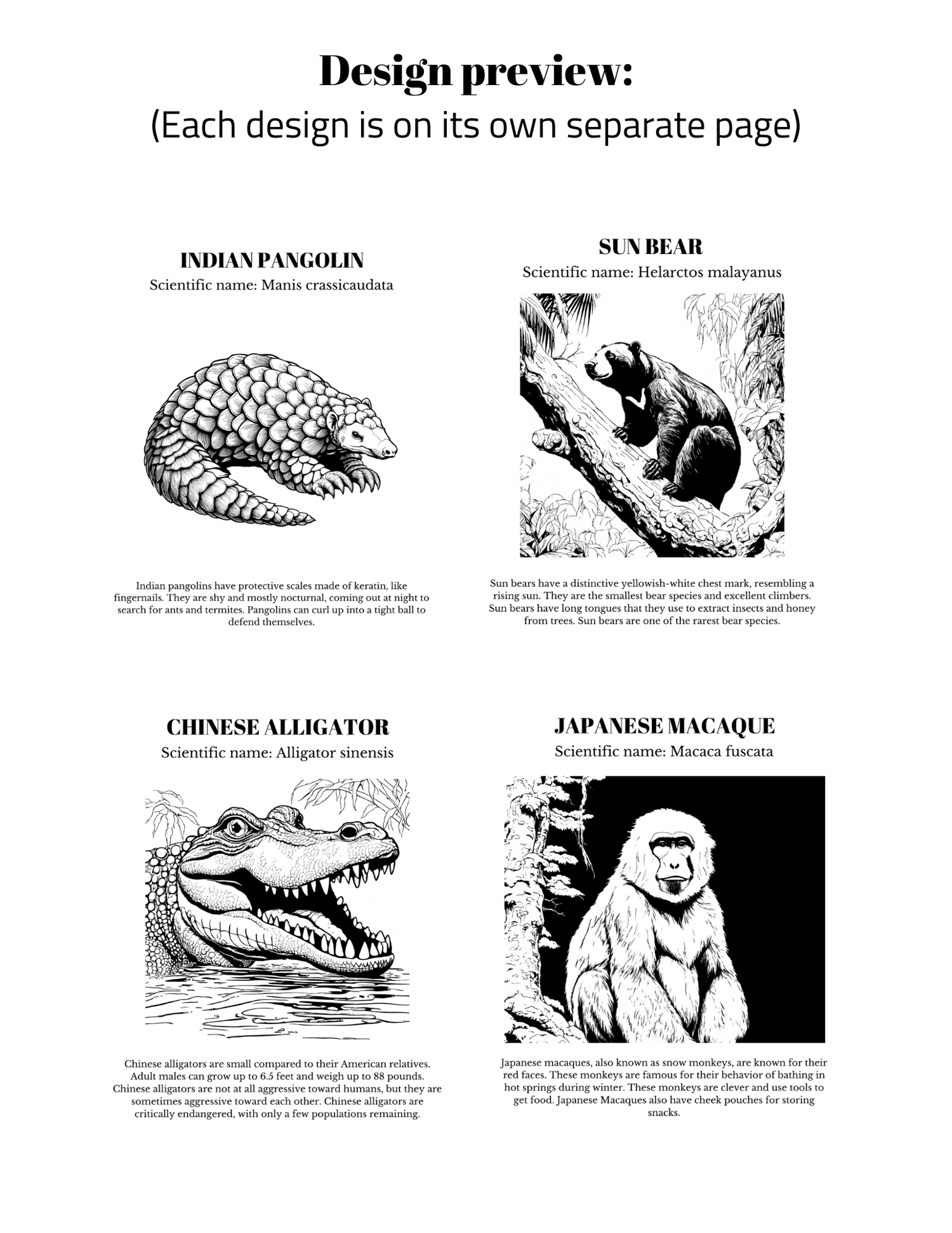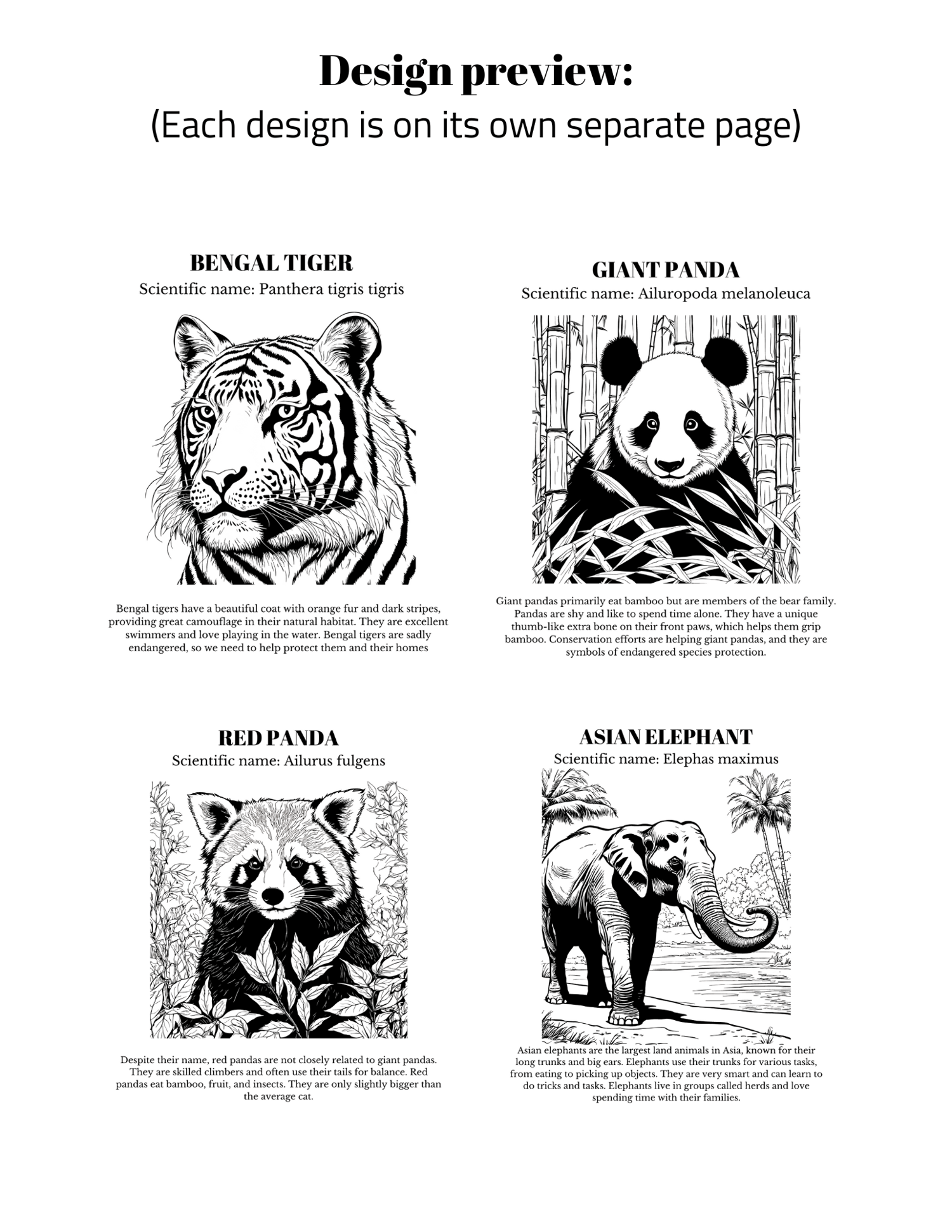 - 20 Unique Pages: With animals such as the elusive Snow Leopard, the strong Indian Rhinoceros, and the endearing Philippine Tarsier, our coloring book guarantees an entertaining and unique coloring experience.