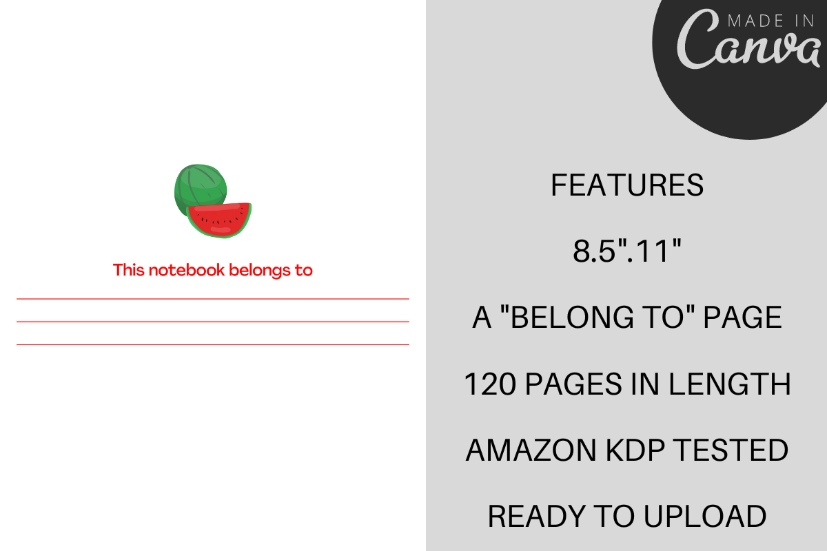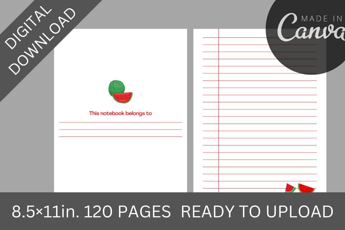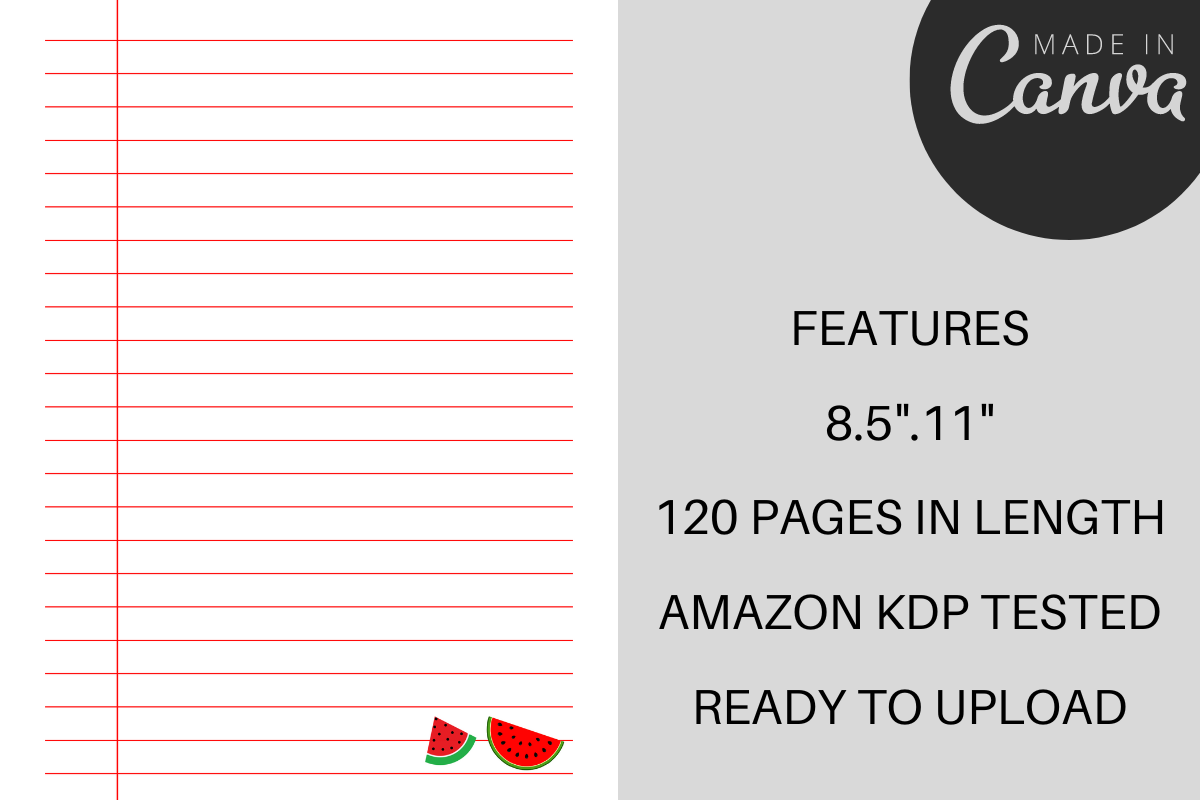 INTERIOR+COVER FOR WATERMELON KDP LINED PAPER, KDP JOURNAL PAPER, KDP LEARN TO WRITE, KDP KIDS JOURNAL, JOURNAL NOTEBOOK MOCKUPS, KDP WORKBOOK, ESTY EBOOK