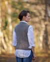 The vest is intended to be worn with some amount (2-4”/5-10 cm) of positive ease. Finished garment measurements: