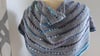Garn: 366 (595) m Sockenwolle in Uni als Hintergrundfarbe, 183 (229) m Sockenwolle in Multicolor als Kontrastfarbe. Das abgebildete Tuch wurde aus Hintergrundfarbe Miss Babs Yummy 2-fdg in Fb Slate („Schiefer“) und Kontrastfarbe Miss Babs Yummy 2-fdg in Fb Perfectly Wreckless („überaus fahrlässig“) gestrickt.