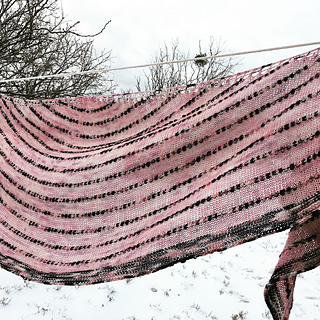 Fertige Größe: 36 (43) cm x 147 (163) cm nach dem Spannen, 211 cm am i-Cord-Rand beim großen Tuch.