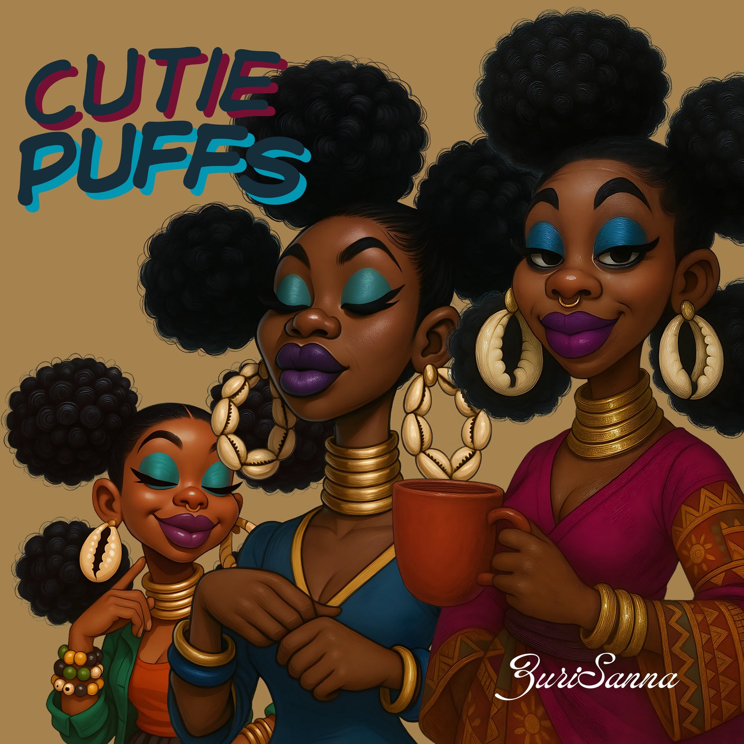 CUTIE PUFFS Afrocentric Black Woman Caricature PNG Bundle | 10 Digital Illustrations | Afro Puff Art