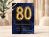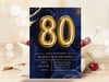 Navy Blue and Gold 80th Birthday Invitation, Royal Blue 80 Invitation