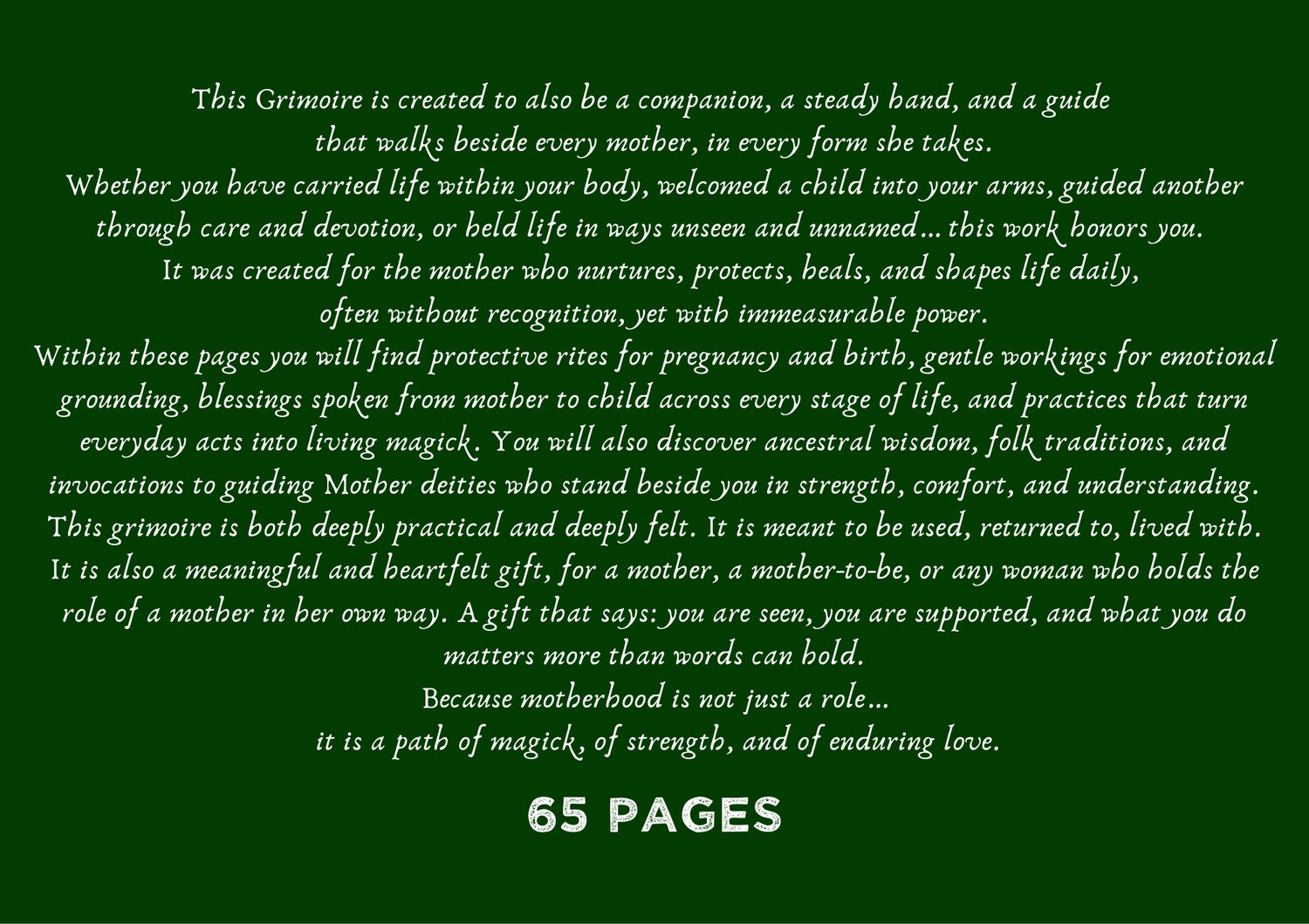 A deeply nurturing grimoire for all mothers, whether by birth or by heart. Filled with protective rites, blessings, and everyday magick, it honors the strength, care, and unseen power of motherhood. A meaningful gift for mothers and mothers-to-be, offering guidance, comfort, and a steady reminder that their magick matters.